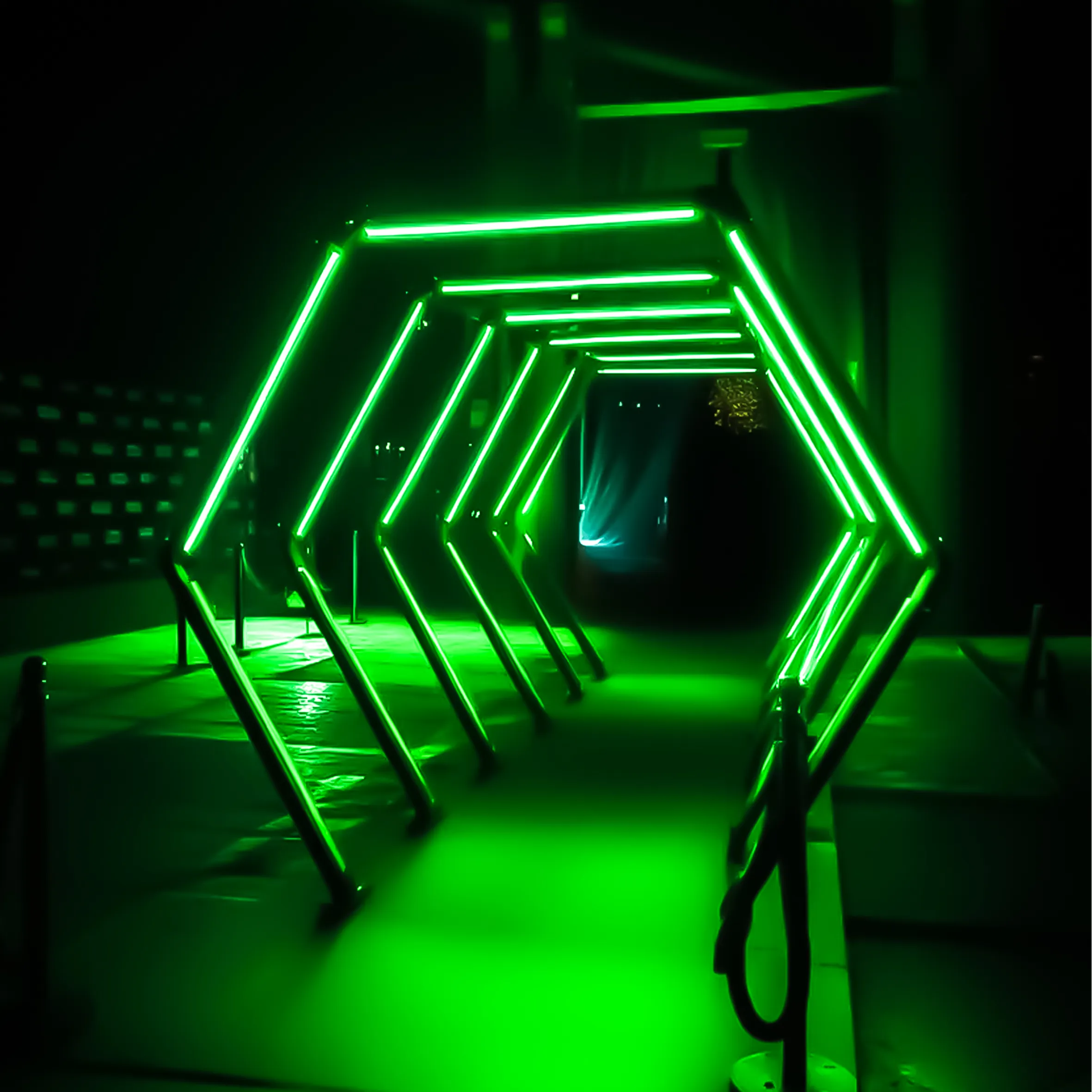 Pixel LED ofrecen una combinación de tecnología innovadora y personalización, ideales para eventos de entretenimiento o parques temáticos. Led túnel y su diseño hexagonal permite jugar con una amplia gama de colores LED RGB.
